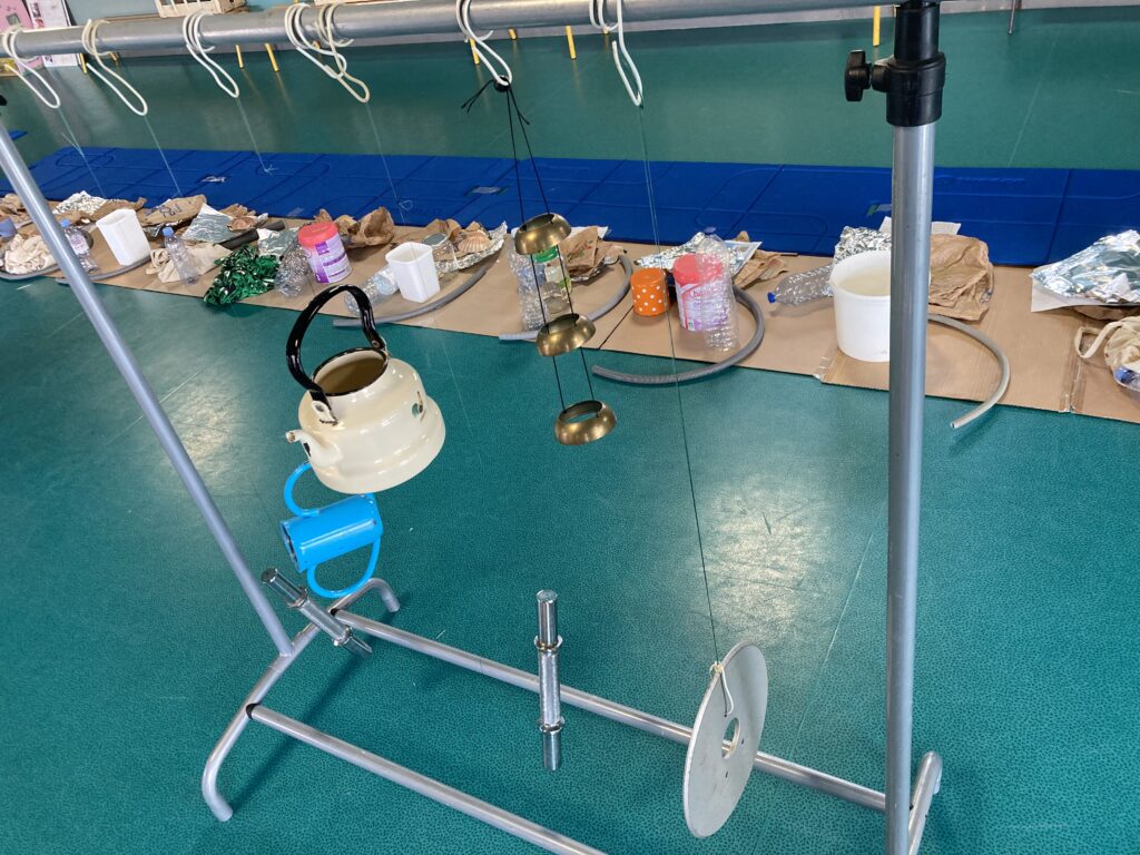 Un instrumentarium (détail) : ensemble de corps sonores issus du quotidien.